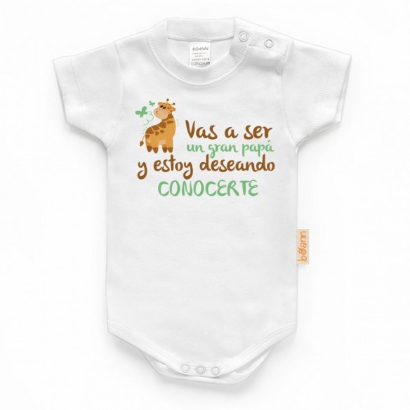 Pack día del Padre con la frase "Vas a ser un gran papá y estoy deseando CONOCERTE" - Chupete + Babero + Body