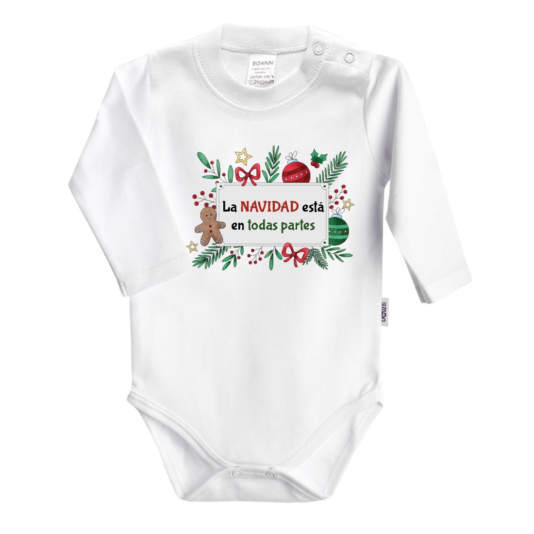 Nuestros bodys navideños están diseñados para hacer aún más especial la primera Navidad de tu bebé. Con frases festivas como "La NAVIDAD está en todas partes", "No te hagas el bueno a estas alturas del año", "Nuestra primera Navidad juntos", "?? Mi primera Navidad", "Mi primera Navidad" y "Feliz ?? Navidad", estos bodys son el detalle perfecto para regalar o para vestir a tu pequeño con un toque de estilo navideño.