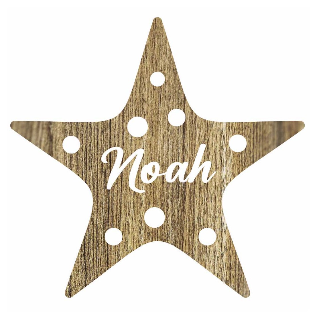 Bola de Navidad Madera Marrón Personalizada - Estrella Blanca