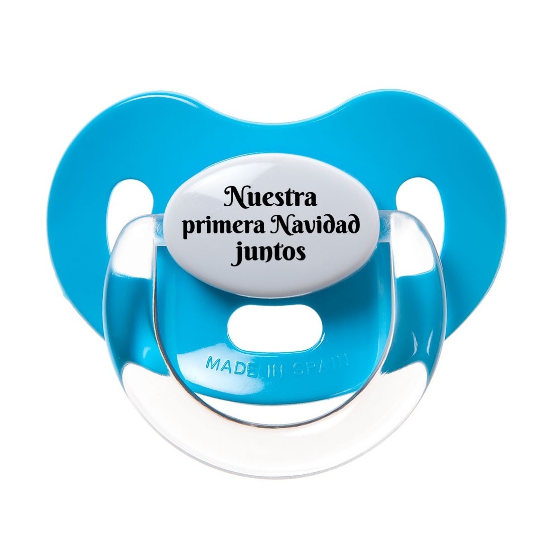 Estos encantadores chupetes están diseñados para añadir un toque festivo a los momentos más dulces de tu bebé. Disponibles en más de 20 colores y con mensajes navideños únicos como "La NAVIDAD está en todas partes", "No te hagas el bueno", "Nuestra primera Navidad Juntos", "?? Mi primera Navidad", "Mi primera Navidad" y "Feliz ?? Navidad". Además, puedes personalizar tu chupete eligiendo entre nuestras frases sugeridas o creando una propia para que sea realmente especial y único.